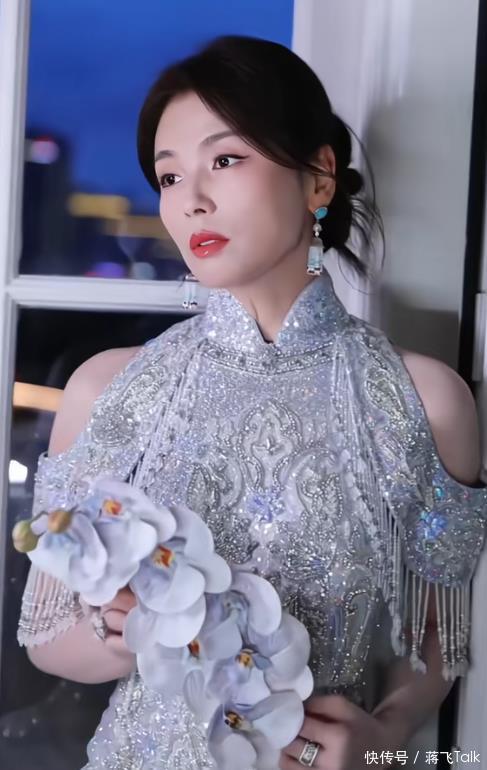 9月19日,刘涛现身上海出席了一场线下活动,同样也是身穿旗袍亮相,光彩夺目的。 只见她身穿的这件银色旗袍很有质感,上面缀满了精致的小碎钻,刚好露出肩膀,胳膊上还是流苏的设计又很有女人味。