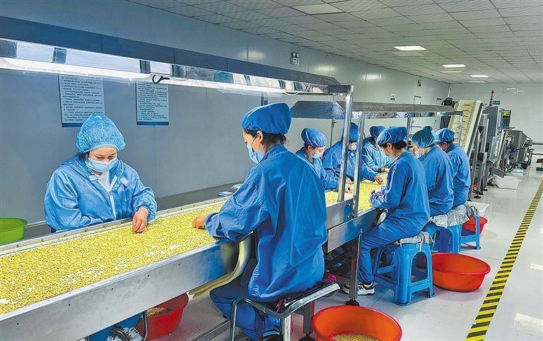 吉林省梅河口市浩成食品有限公司生产车间内,工人们在分拣脱壳后的松子籽粒。经济日报记者 马洪超摄