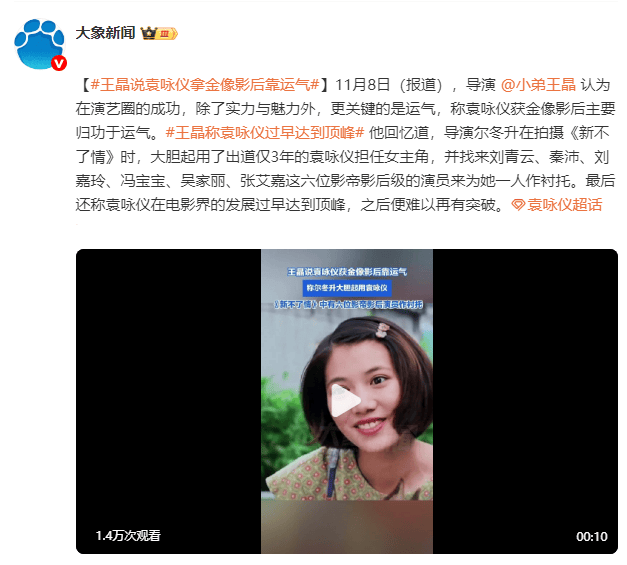 最后,王晶还称袁咏仪在电影界的发展过早达到顶峰,之后便难以再有突破。
