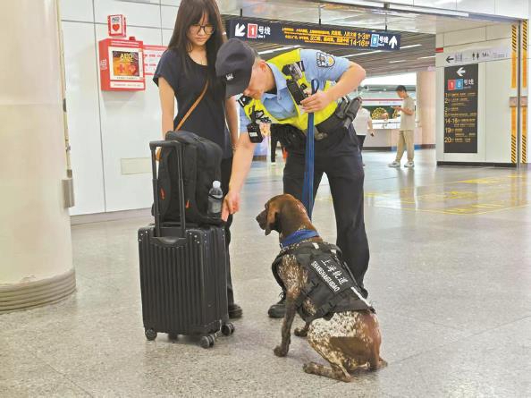 密集的客流中,警犬如何有针对性地嗅检呢?“工作中,我们会对乘客携带的物品进行预判,再配合警犬嗅检。比如说春秋两季是房屋装修旺季,常有夹带油漆、香蕉水等易燃危险品进站现象。”宋王缘说,“训导员最大的快乐是什么?就是每个班次圆满完成或训练课目突破时,和警犬在一起亲热,听爱犬高兴叫几声,这表示它们也很自豪!”