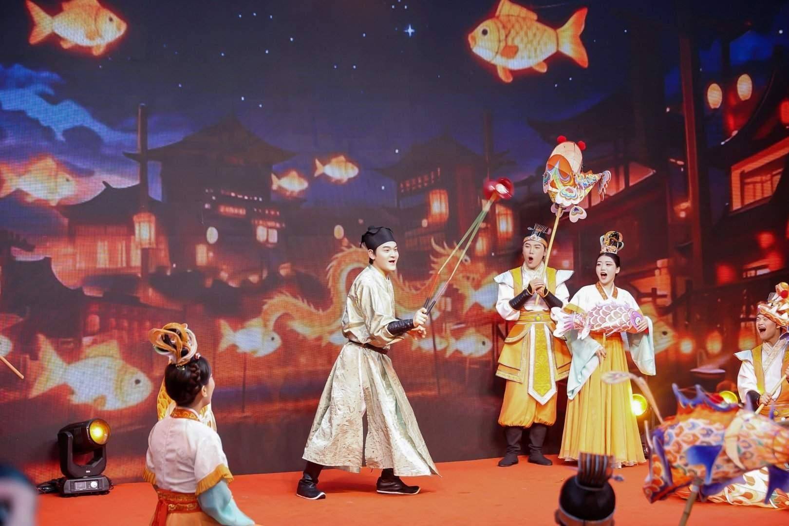 斗级营(二期)以保护性修缮为基础,打造“抬头见黄鹤楼”的特色打卡场景,屋顶火锅、非遗文创等新业态注入鲜活活力,相邻的户部巷尽显汉味烟火,热干面、豆皮、煨藕汤等特色美食唤醒舌尖上的汉味记忆。春节期间,斗级营还有沉浸式非遗鱼灯巡游、开财库大典、露天戏曲演出等活动以及祈福为主题的氛围美陈包装,让游客在“斗”里找福在“斗”里享福。古装舞蹈巡游《敦煌飞天》、川剧变脸与喷火绝活等民俗活动惊艳亮相,更有“李白”与游客斗诗,重现“诗酒趁年华”的文人雅趣。